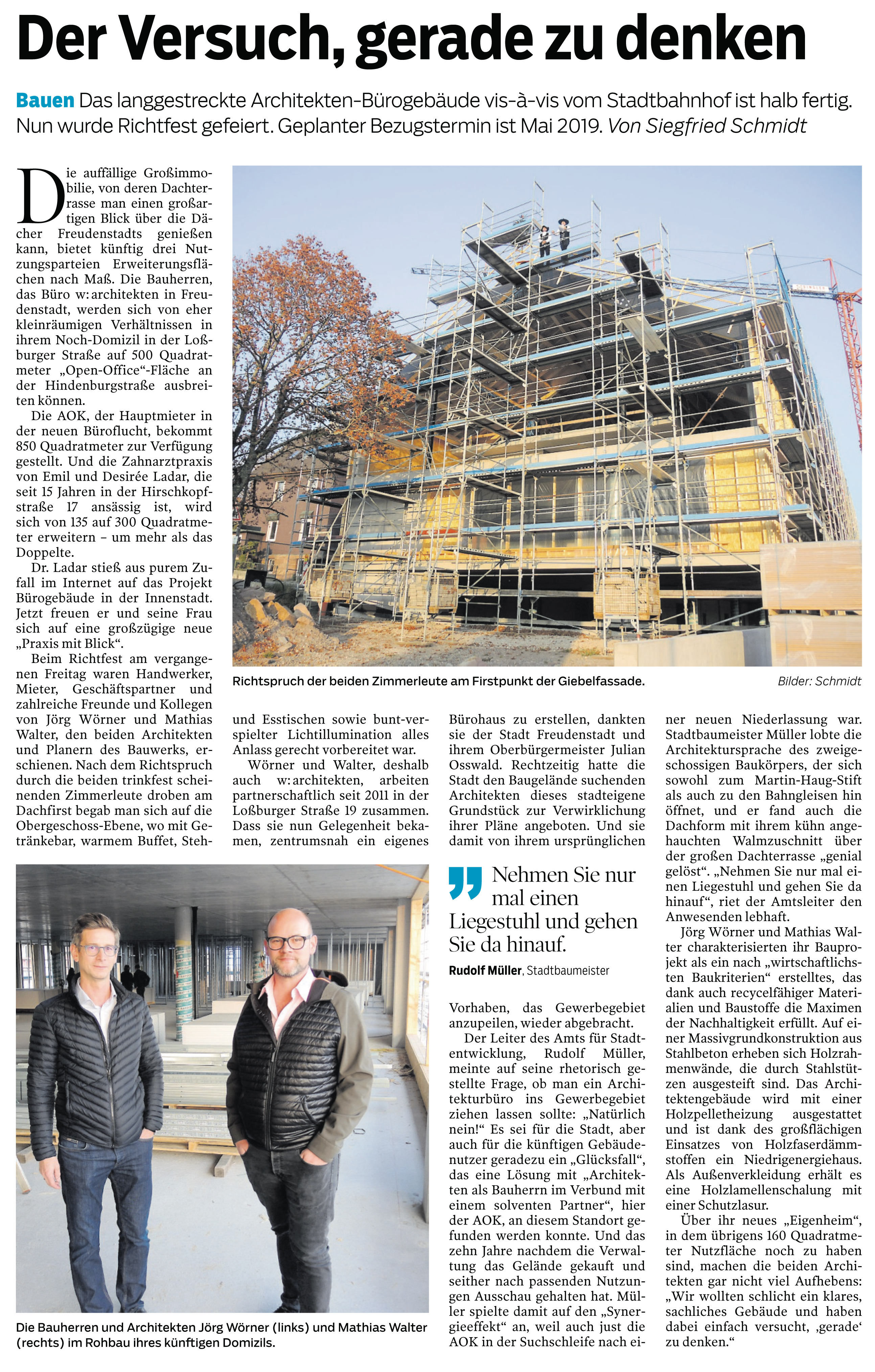 Richtfest für das neue Bürogebäude in Freudenstadt