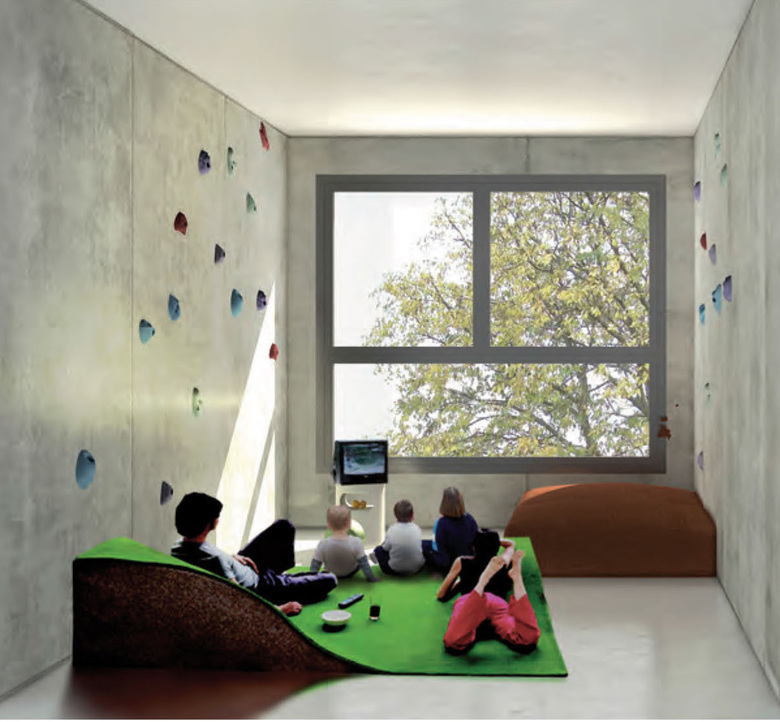 Lastly, the human scale is reflected in work focused on shared private space (SPS) within the project. The lobby of the building features a shared exercise room and a play area for children, common areas that promote social cohesion and exchange between inhabitants.