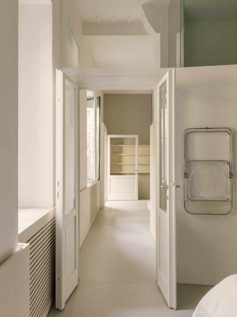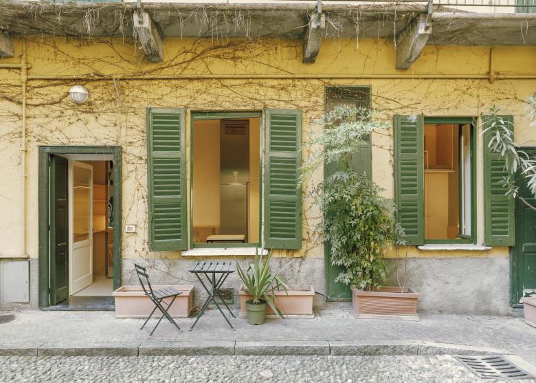 The small 45 sqm apartment is located on the ground floor of a characteristic Milanese "casa di ringhiera".