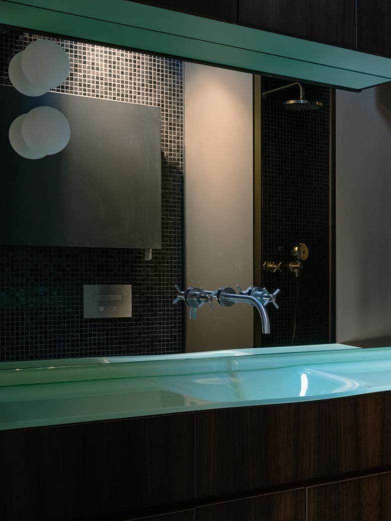 Gli elementi d’arredo sono realizzati su misura per controllare l'esiguo spazio a disposizione e definiscono gli interni con un approccio quasi sartoriale dove i dettagli e i materiali impiegati attribuiscono un preciso carattere all'abitazione.