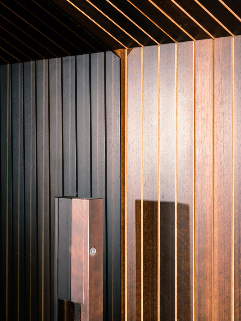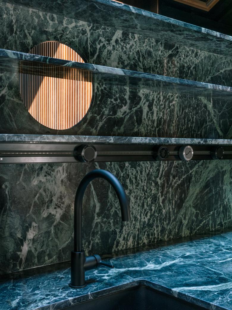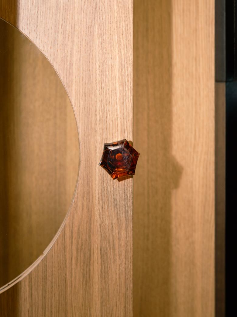 Il tema sviluppato è intensamente legato alla luce, strumento che esalta i materiali e le relazioni tra gli arredi che si confrontano attraverso le sfumature che caratterizzano le preziose superfici in ottone, rovere ed eucalipto