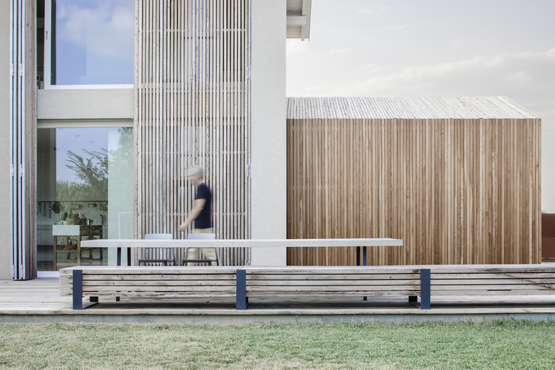 The building claims its membership to sites with a main front from the harsh nature, grumpy and unhelpful, which is opposed to a domestic and faithful interior space and a large façade that opens the endless countryside.
