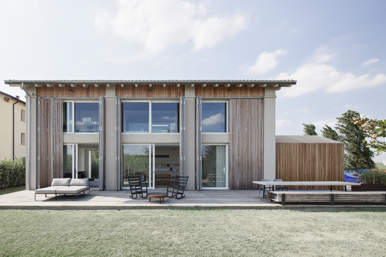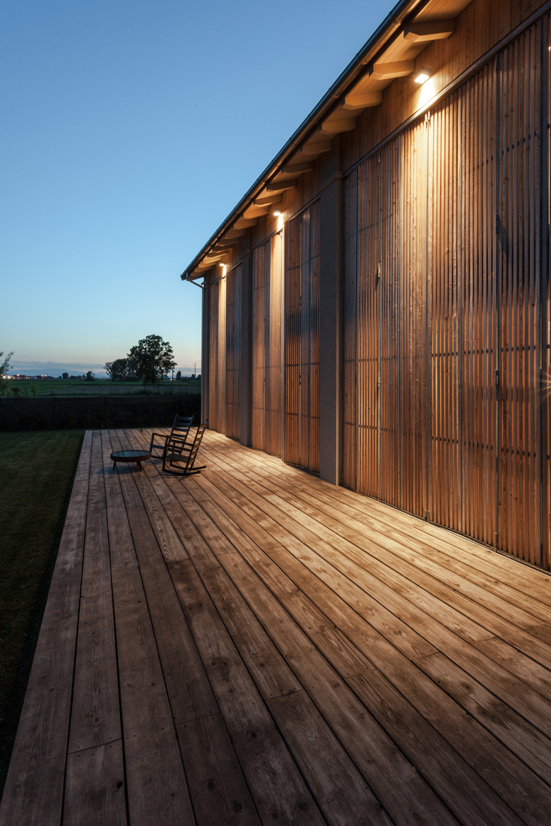 The project involves the recovery of an old country barn partially damaged by the earthquake. The volume of the building and its size remained invariate.The project redefines the interior spaces and the distribution system, while externally develops a dual opening system.