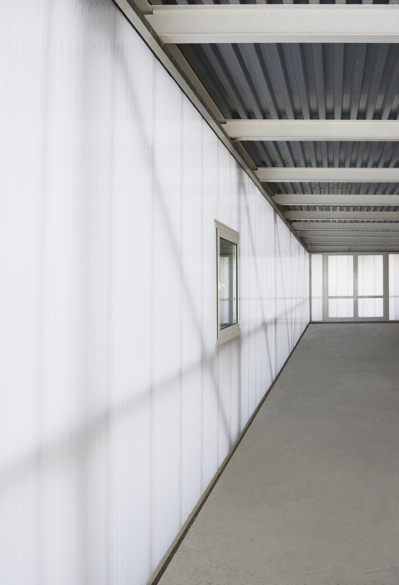 The polycarbonate wall during the night works like a lamp that emphasize the social function of the building and make it a signal in the landscape.