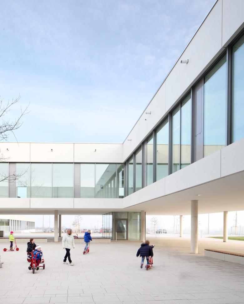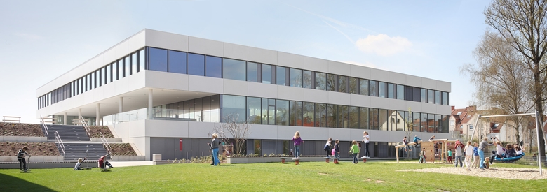 Der Neubau für die 3,5-zügige Grundschule ist für eine Auslastung mit 350 Schülern und einer pädagogischen Nachmittagsbetreuung von 160 Schülern geplant.
