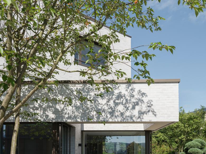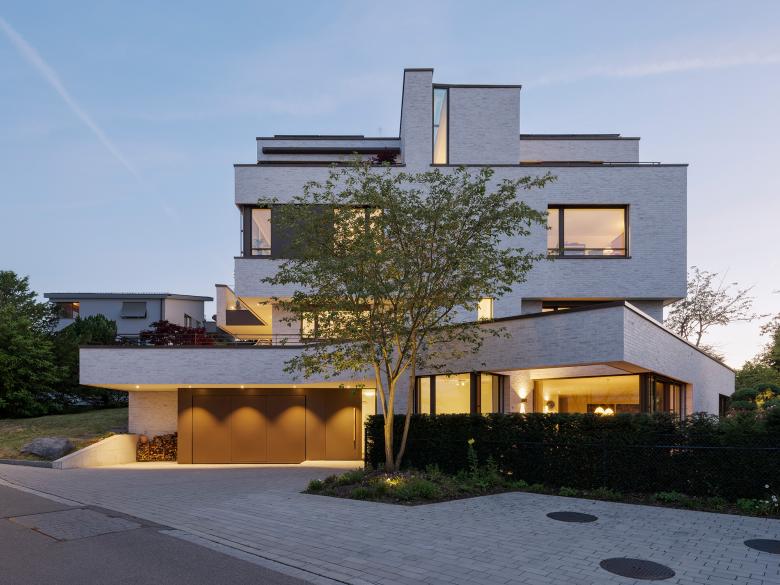 Auf dem Familiengrundstück an aussichtsreicher Lage sollte ein Mehrparteienhaus mit vier Wohneinheiten entstehen. Dem Charakter der Umgebung entsprechend, entstand ein filigran anmutendes Wohnhaus, das sich durch die zwei verschränkten Kuben definiert. Die Feingliedrigkeit setzt sich in der Wahl des Fassadenmaterials fort. Bewusst gesetzte Einschnitte und ein Wolkenbügel verleihen einen Hauch von Extravaganz.