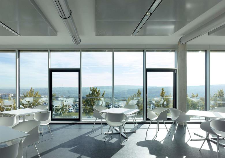 Ein Aspekt des Entwurfes war es, den Anteil an versiegelter Fläche zu minimieren; dies ergibt sich durch intelligente Stapelung von Büro- und Produktionsflächen sowie die Platzierung eines Parkdecks in der Landschaftsfuge zwischen bestehendem Gelände und Gebäude. Das nachhaltige Energiekonzept inkludiert ein Maximum an natürlicher Lüftung und Belichtung.