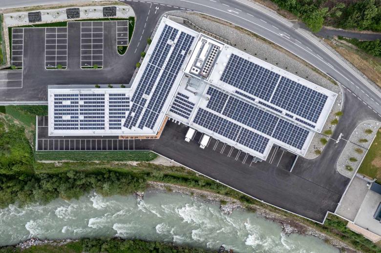 Eine weltweite Besonderheit ist die von ATP geplante Dachkonstruktion im Verkaufs- und Gastronomiebereich, bei der ein Teil als punktgestützte Flachdecke mit Brettsperrholz-Elementen ausgeführt ist. Dadurch entfallen die im Holzbau üblichen Unter- und Überzüge. Mit einer Gesamtfläche von 650 m2 stellt sie die bisher weltweit größte Brettsperrholz-Platte dar. Auch optisch überzeugt das System: Als einheitliche und ebene Deckenuntersicht spannt sich die Holzdecke effektvoll und dramatisch über den Raum – ganz ohne störende Träger.