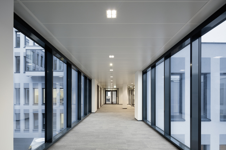Ca. 300 Beschäftigte finden in diesem Gebäudekomplex auf ca. 13.000 m² BGF Platz. Büros sowie Besprechungsräume haben – um zwei grüne „Oasen” angeordnet – hohe Aufenthaltsqualität.