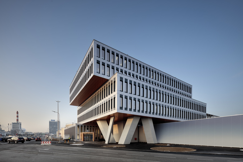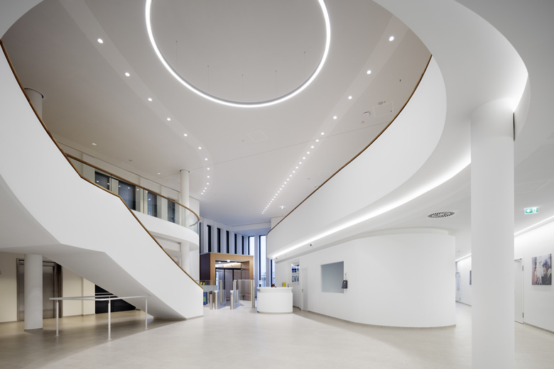 ATP-Tragwerksplaner konzipierten das 65x75 Meter große Gebäude weitgehend stützenfrei und mit entsprechend flexiblen Flächen für unterschiedliche Funktionen. Vier Stiegenhäuser und ein zentraler Fahrstuhlkern dienen als vertikale Verbindung aller Baukörper und Funktionsbereiche.