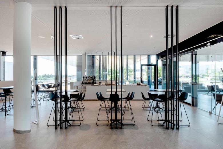 Frisch und transparent – Herzstück des Neubaus bildet die hochtechnisierte Frischeproduktion, die eine Tageskapazität von bis zu 30.000 kg möglich macht. Dort befinden sich Produktion, Qualitätsmanagement, Forschung und Entwicklung. Von einem schwebenden Besuchersteg aus gewährt eine durchgängige vier Meter hohe Glasfront Einblicke in die Herstellung der Kosmetikproduktion. Die Fassade besteht aus einer weißen Frame- und Lisenenkonstruktion. Sie signalisiert nach außen den Frischegedanken von RINGANA und fungiert durch die Lisenenkonstruktion auch als Sonnenschutz.