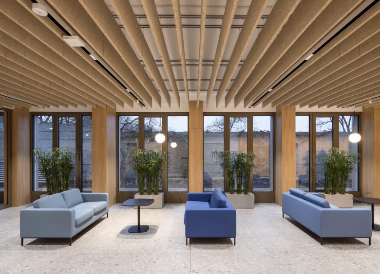 Das Bürogebäude steht wie ein Pavillon in der einzigartigen Grünlage zwischen dem UNESCO-Weltkulturerbe Schloss Belvedere mitsamt Park, dem Salesianerinnenkloster und dem Botanischen Garten und fügt sich harmonisch in das historische Ensemble ein. Wichtigstes neues Gestaltungselement ist das Atrium, das sich um eine zentrale Treppe über alle Geschosse erstreckt und einen offenen Kommunikationsraum schafft. Die öffentliche Zone verbleibt im Erdgeschoss, während gemeinschaftliche Nutzungen wie Cafeteria und multifunktionale Räume für Veranstaltungen auf das Dach übersiedelt sind.