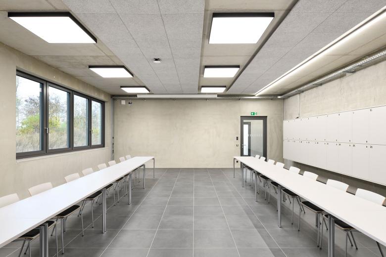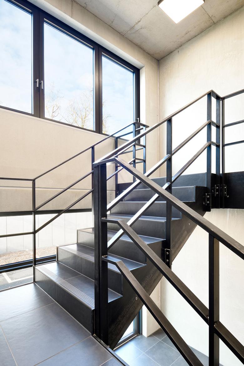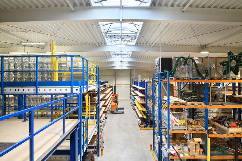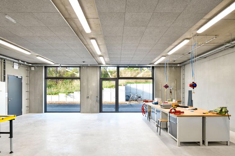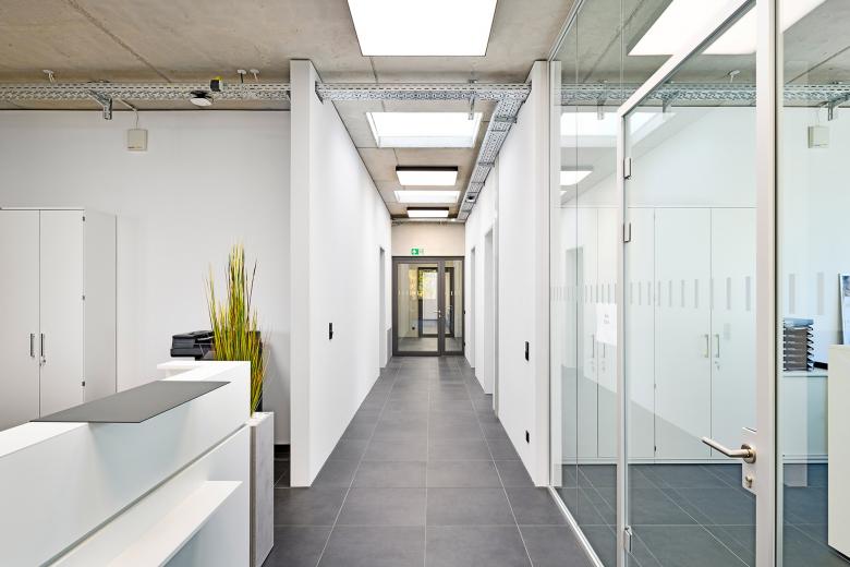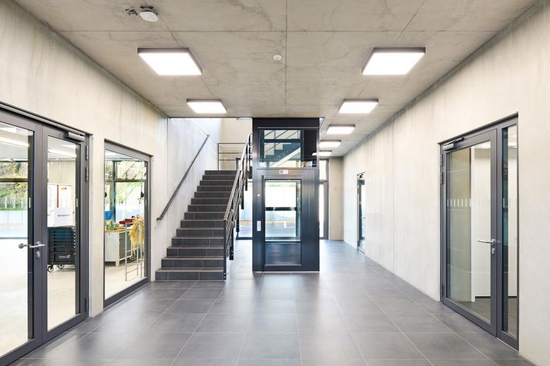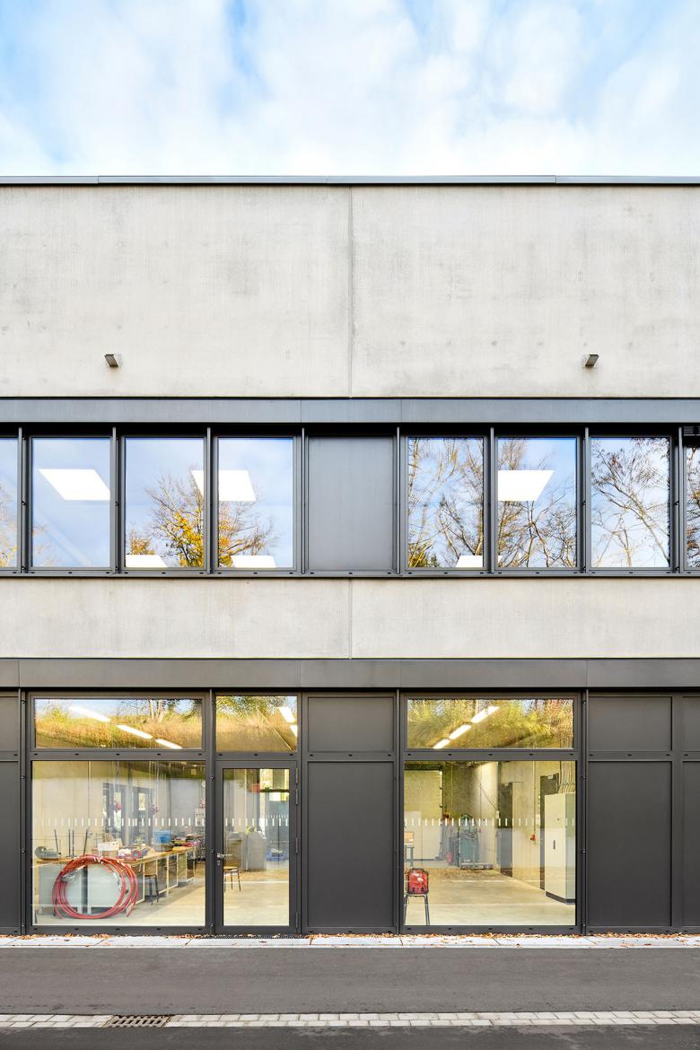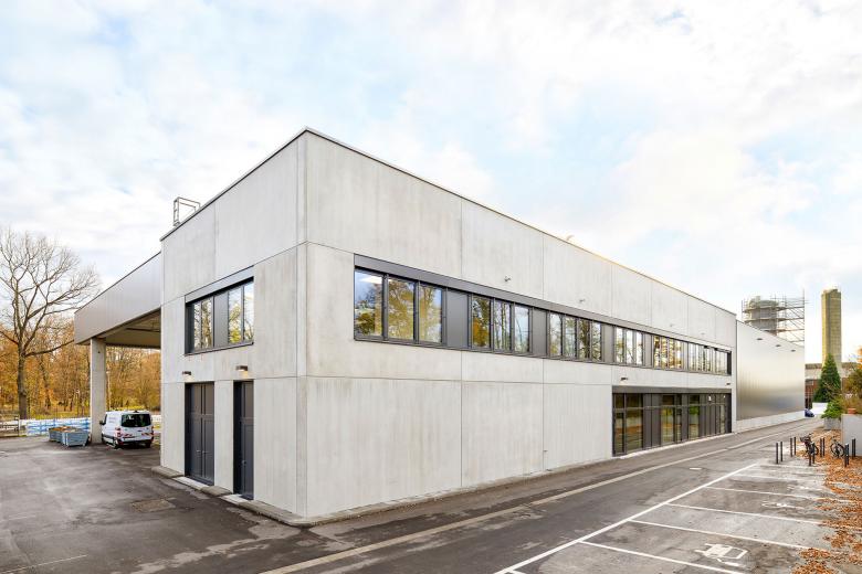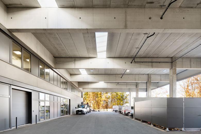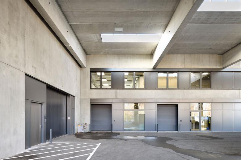 Das Raumkonzept mit Logistik und Werkstatt ist auf diese Weise in optimaler Lage zueinander miteinander verknüpft und über die umlaufende industrielle Infrastruktur an den Bestand angeschlossen.