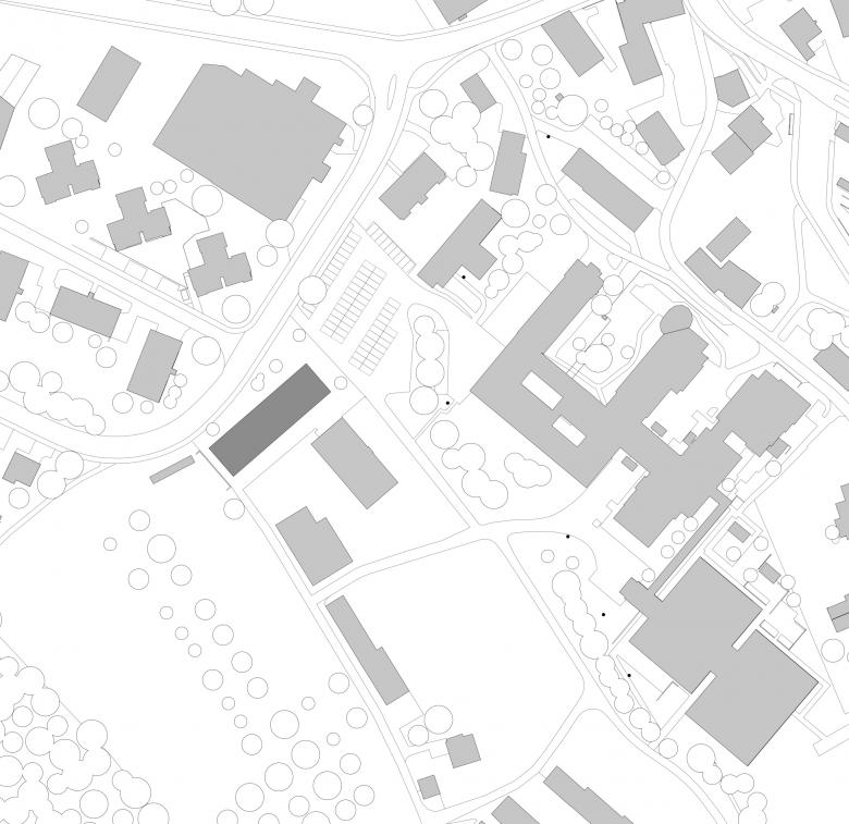 Die Grundrissstruktur entstand ausgehend von dem Wunsch des Bauherrn, das Wohnhaus in den ersten Jahren als Provisorium für zwei psychiatrische Stationen zu nutzen. Es wurde daher eine nutzungsneutrale Kammerung gewählt, die ideal für Klinikstationen ist und zu einem späteren Zeitpunkt mit nur wenigen Eingriffen zu Wohnungen umgebaut werden kann. Der Wohnungstyp orientiert sich dabei an dem bäuerlichen Wohnen: Über die Laube tritt man direkt in eine grosse Wohnküche, über die alle weiteren Räume erschlossen werden.