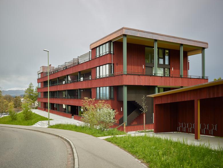 Der Neubau an der Bergstrasse bildet den Auftakt zu einer zukünftigen Wohnbebauung auf dem heutigen Landwirtschaftsareal des Schlösslihofs. Er ersetzt eine eindrückliche Scheune und schafft als Laubenhaus, das sich typologisch an ländlichen Vorbildern orientiert, dabei aber einen eigenständigen Ausdruck besitzt, eine neue Identität für die gesamte Parzelle.
