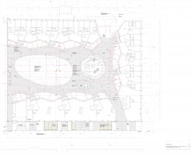Der Vorbereich zur Eggbühlstrasse wird als vielfältig nutzbare Erschliessungszone ausgestaltet. Trotz der intensiv genutzten Flächen soll sie einen möglichst hohen und effektiven Grünanteil aufweisen. Durch die unregelmässig gesetzten Grünflächen als Basis von Baumgruppen, strukturieren diese den Raum entlang der Eggbühlstrasse und werten diesen auf ganzer Länge auf.