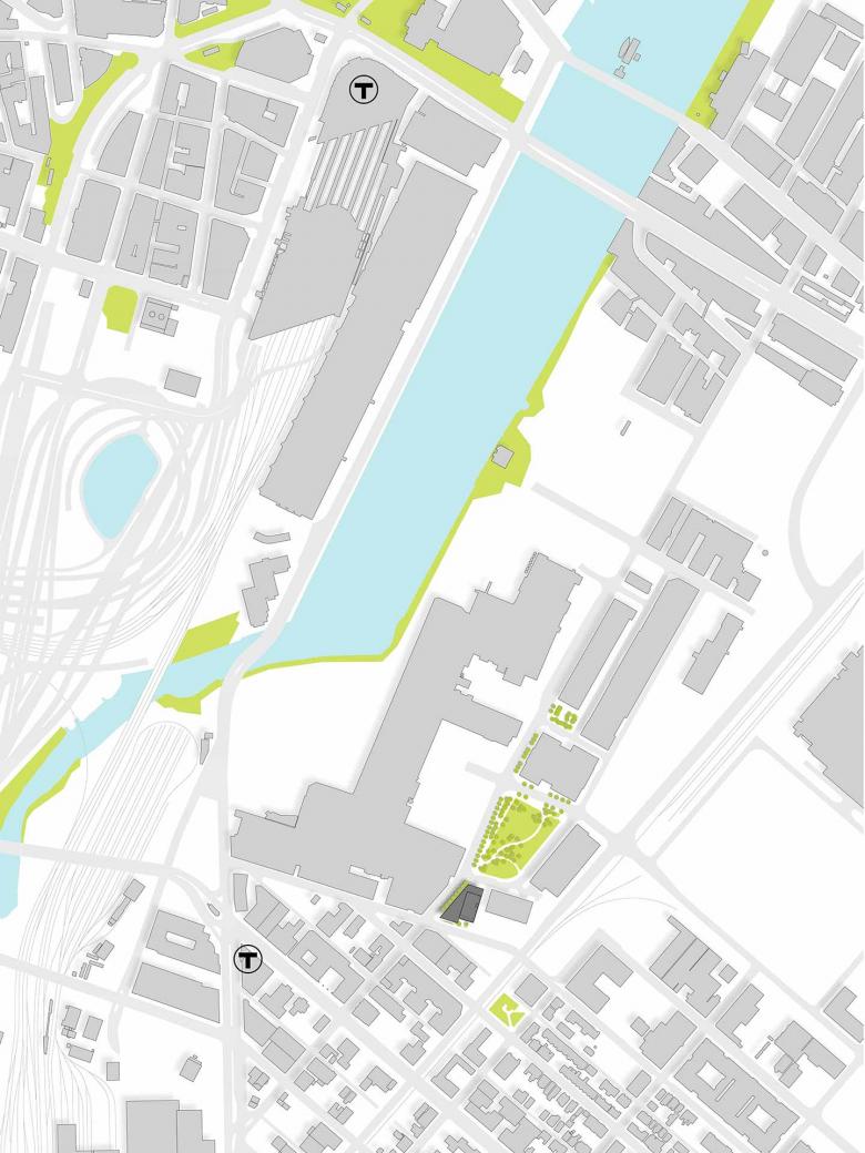 Following the acquisition of land immediately to the west of the original EpiCenter, the expansion was planned to fill the triangular site to create an urban edge along A Street, wrapping to the north along West First Street. A new path of trees, shrubs, bike racks, and permeable pavers along West Second and A Streets welcomes pedestrians, connecting them from the West Broadway neighborhood to the Fort Point Channel neighborhood. To the north, an expansive new public park fronts the new north-facing facade of the EpiCenter. An existing sunken garden was maintained and enhanced with new plantings and a reconfigured access stair as an outdoor extension of event and gallery space to the south.