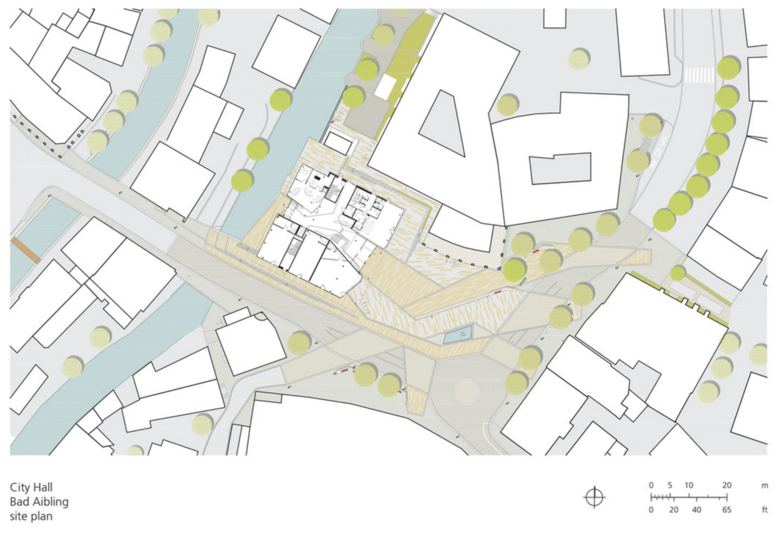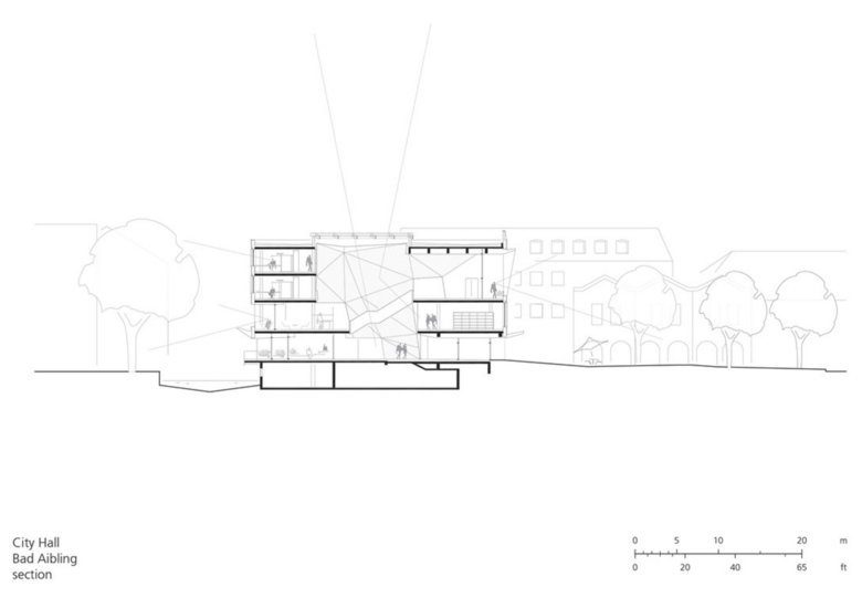 In the center of the Bavarian town of Bad Aibling lies Marienplatz, a historic plaza flanked by public, retail and hotel buildings. It is here that the two main streets of the town intersect and where the existing Town Hall from the 1970s has stood. In recent years, the town of Bad Aibling decided to construct a new Town Hall as a means by which to further invigorate the center.