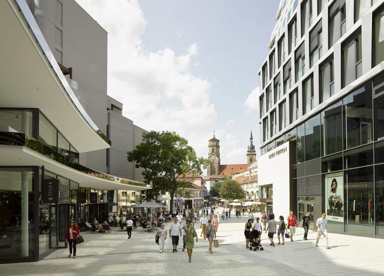 The re-planning of the Dorotheen Quartier not only creates new areas for public use, it also offers a unique opportunity to reassess the relationship with the Karlsplatz arcade. This thoroughfare has, until now, always been perceived as the less important “back” of the site, situated behind the Breuninger Department Store, and leading towards Sporerstraße and Karlstraße. With this project, which includes three mixed-use buildings with offices, small-scale retail and urban living, the highly valuable central city core is now infused with a new identity and vitality – complete with a broad range of user activities. Thus, the new area augments Stuttgart’s existing, thriving network of lively pedestrian areas.