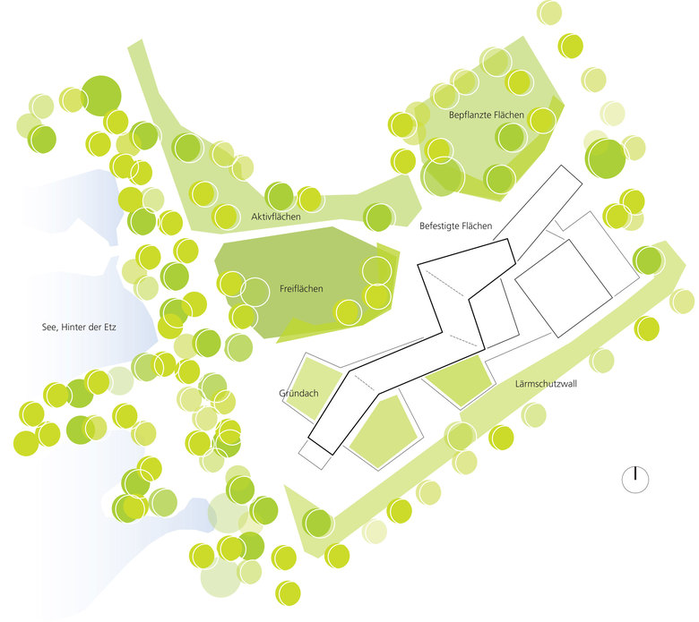 The new Ergolding Secondary School sits within a far-stretching natural and artificial landscape, beside an existing special school and along the Highway 11/15. The schools will be nestled together between a nature-reserve with a pond, a meadow, several sport fields, a few residences, and a community center. As the demand for secondary schools continuously increased within the last couple of years, the new school provides the region around the Bavarian town of Ergolding, close to Landshut, 70 km north-east from Munich with the needed capacities.