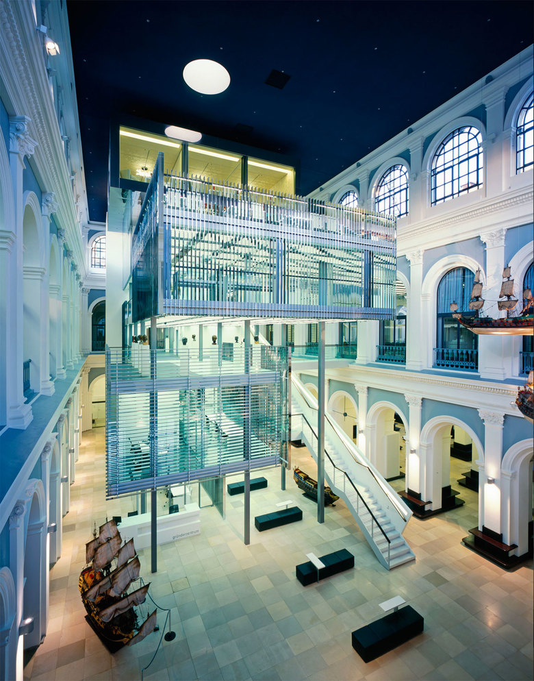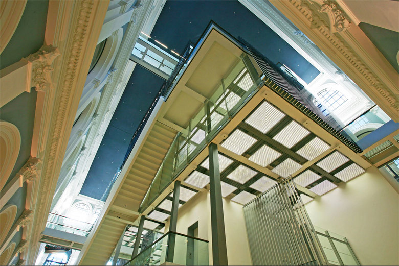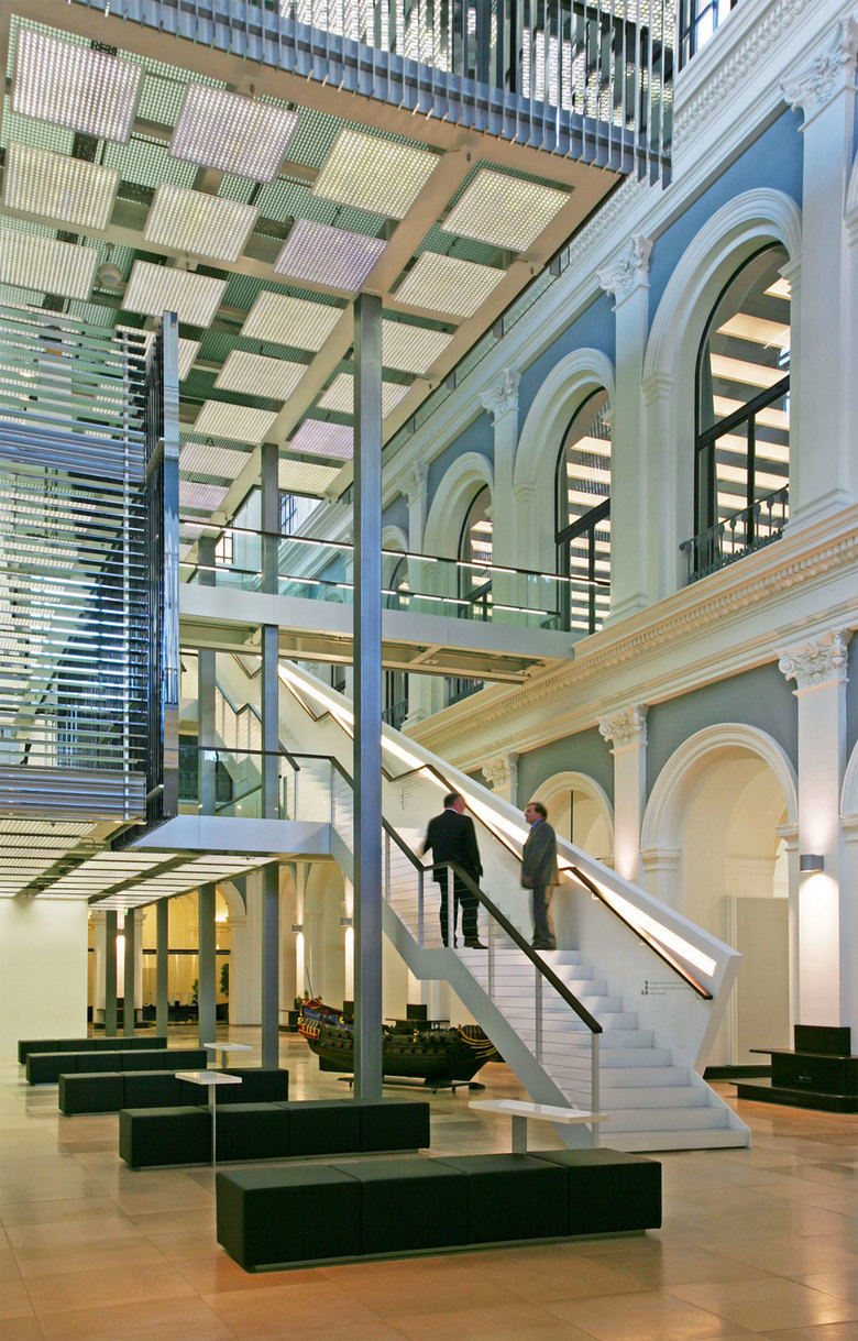 Hamburg’s Chamber of Commerce required a more intensive use of their existing neo-classical building in the city ceerre. The brief for the 2003 design competition anticipated the introduction of additional floor levels within the existing Börsenhalle and a structure which respects the fabric of the historic building.