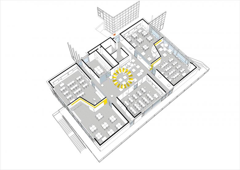 The new building of the Public Secondary School Neuburg an der Donau (former Paul-Winter School) will be erected right in front of the city gates of Neuburg. In addition to the program required for schooling purposes it will also comprise a gymnasium, outdoor sports areas, a school cafeteria and rooms for the after-school care of students. The building is situated on the southern edge of the city, close to the historic star fort Sternschanze, on an open site with rural characteristics. It responds to the varied topography surrounding it with the differentiated design of its constituent parts, which are interwoven to form a sculpted landscape for learning and physical activity. This historic context and the harmonious and the careful insertion of all parts of the building into their surrounding environment are the key design theme of the new school building. Its design is based on the principle of free order and is broken down into smaller constituents to the building, where each individual part finds its own place and contributes to the greater whole completely naturally. Furthermore, creating houses for each class corresponds with the ideal of each educator.