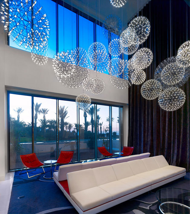 This luxury hotel is located in Oran, a city in northwestern Algeria, situated on the coast of the Mediterranean Sea. Considering the aesthetic and cultural richness of the area developed the lighting concept based on four words, Geyser, Plot, adventure and experience.