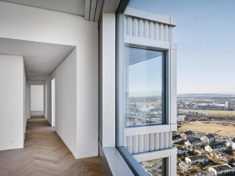 Das Zentrum Bären, in unmittelbarer Nähe zum Bahnhof Ostermundigen, bezweckt eine räumlich qualitätsvolle Verdichtung der Baustruktur verbunden mit der Schaffung von Mehrwert auf der Ebene des öffentlichen Raums. Das Hochhaus fügt einen neuen Massstab in das bestehende Siedlungsgefüge ein und setzt ein markantes, städtebauliches Zeichen. Der Turm ist rechtwinklig zur Bahnlinie und damit auch auf einen vorgelagerten Platz an der Bernstrasse ausgerichtet. Der rückwärtig ausgeweitete Gebäudesockel sowie der neue platzbildende Baukörper an der Bernstrasse vermitteln in Massstab und Geometrie zur angrenzenden Bebauung und deren Entwicklung. Massive Brüstungsbänder gliedern eine einheitliche Hülle über Turm, Schaft und Sockelbau. Zusammen mit der untergeordneten Vertikalstruktur verleihen sie der Hochhausskulptur eine vornehme Behäbigkeit und einen ablesbaren Massstab. Verglasungen unterschiedlicher Ausprägung und Funktion sind Ausdruck der Nutzung. Sie ergänzen das Spiel mit der Tiefe und lassen die Hülle zu einem Relief werden. Die Farbigkeit des Turms wird durch die gewählten Materialien bestimmt. Profile in Aluminium verleihen dem Turm zusammen mit dem auftretenden Reflexions- und Glanzgrad der Glaspartien eine zurückhaltende Eleganz.
