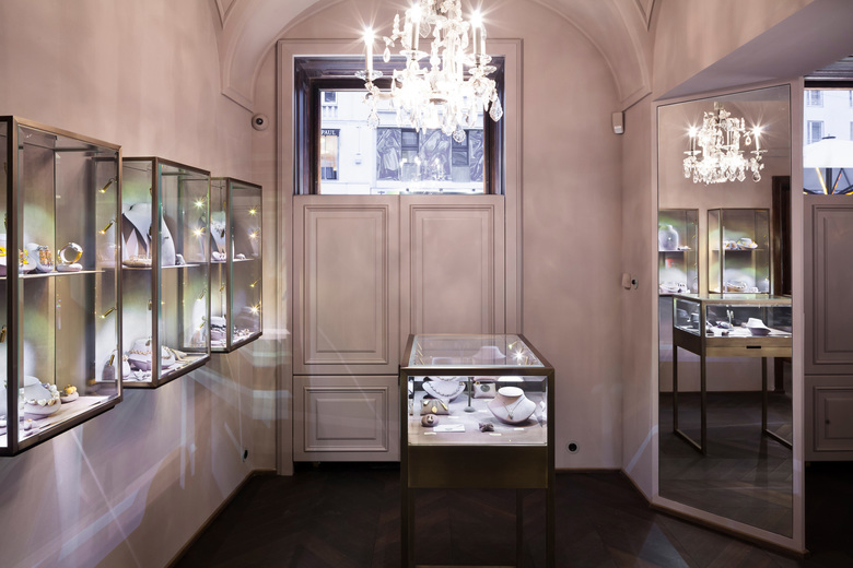 Zeitlosigkeit als Thema: Sanftes Re-Design eines Wiener Traditionsgeschäftes, das sich seit Generationen im Familienbesitz befindet. Originale Ausstattungselemente der 150 Jahre alten Werkstätte des Wiener Spitzenjuweliers A.E. Köchert sind noch erhalten und erstrahlen in neuem Glanz. Kostbare Materialien wie Samt und Bronze ergänzen die alte Einrichtung. Hängevitrinen, Beleuchtung und textile Sitznischen atmen die Eleganz der Wiener Salons der Jahrhundertwende. Edle Grautöne fassen das Geschäft zu einer neuen architektonischen Einheit. Durch die gezielten Eingriffe bleibt die spezifische Atmosphäre dieses ursprünglich von Theophil Hansen geplanten, denkmalgeschützten Geschäftes weitgehend erhalten.