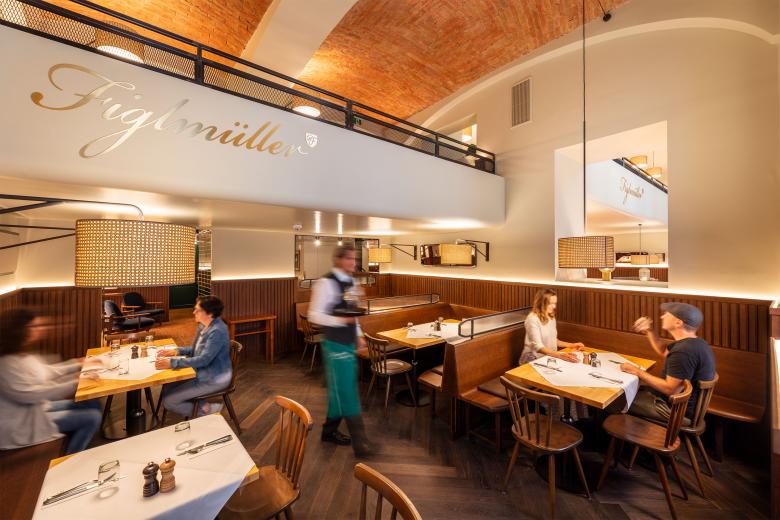 „Ziel war es, das seit mehr als 100 Jahren bewährte Figlmüller-Konzept im Kern zu erhalten, es aber einem modernen Rahmen einzubetten“, erklärt BWM-Architekt Erich Bernard, „die authentische Wiener Atmosphäre sollte bewahrt, die Erwartungen der Gäste erfüllt werden. Zugleich wollten wir etwas Neues und Zeitgemäßes schaffen. Denn ein jedes alteingesessenes Wirtshaus ist eine Art Patchwork, hier allerdings wurde das Patchwork zum Konzept erhoben.“