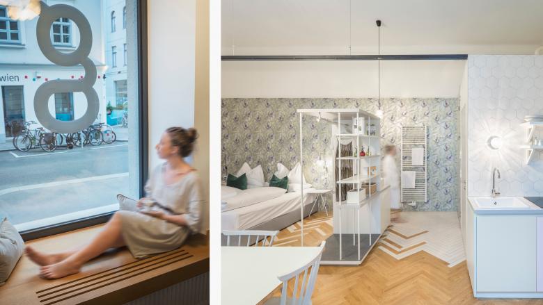 Das grätzlhotel ist Teil einer neuen urbanen Szene. Ganz nach dem Motto global denken, lokal handeln, setzt das grätzlhotel auf die Stadtteil-Urbanität von Wien. Die ArchitektInnen (BWM Architekten: grätzlhotel karmelitermarkt und grätzlhotel meidlinger markt / Kohlmayr Lutter Knapp: grätzlhotel belvedere) legten in der Gestaltung der Suiten großen Wert darauf, dass jedes Zimmer, das im Erdgeschoß unmittelbar am Stadtleben teilnimmt, zugleich ein wohnlicher und geschützter Rückzugsort für den Gast ist.