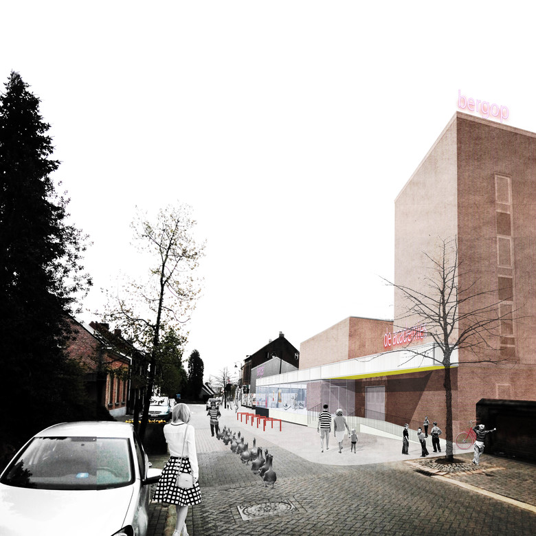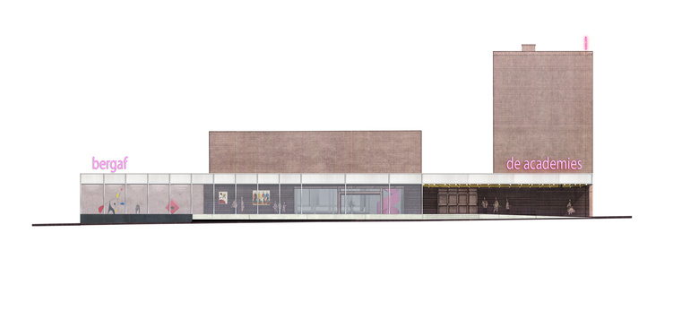 The Arts Academy of Heist sits at its current spot since 1897 and has been renovated but once. At the foot of the hill (= den berg), it is the only anomaly in Heist’s main street, oozing the cultural optimism of the sixties. Gutsy as the architecture may be, its blind front and narrow income make the building seem unapproachable, defensive and distant – actual interaction with the surrounding community is virtually non-existent.