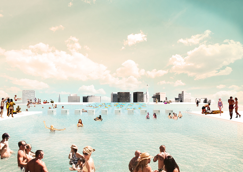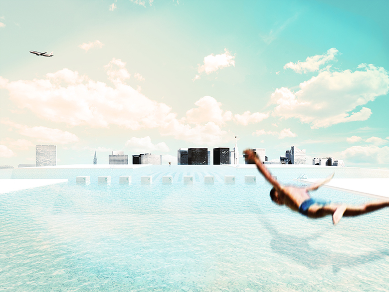 On top of the logistics center is the 'attic of Brussels' with its first open air pool for the city. This connects the public with an unknown urban space and could help revitalize the identity of the area.