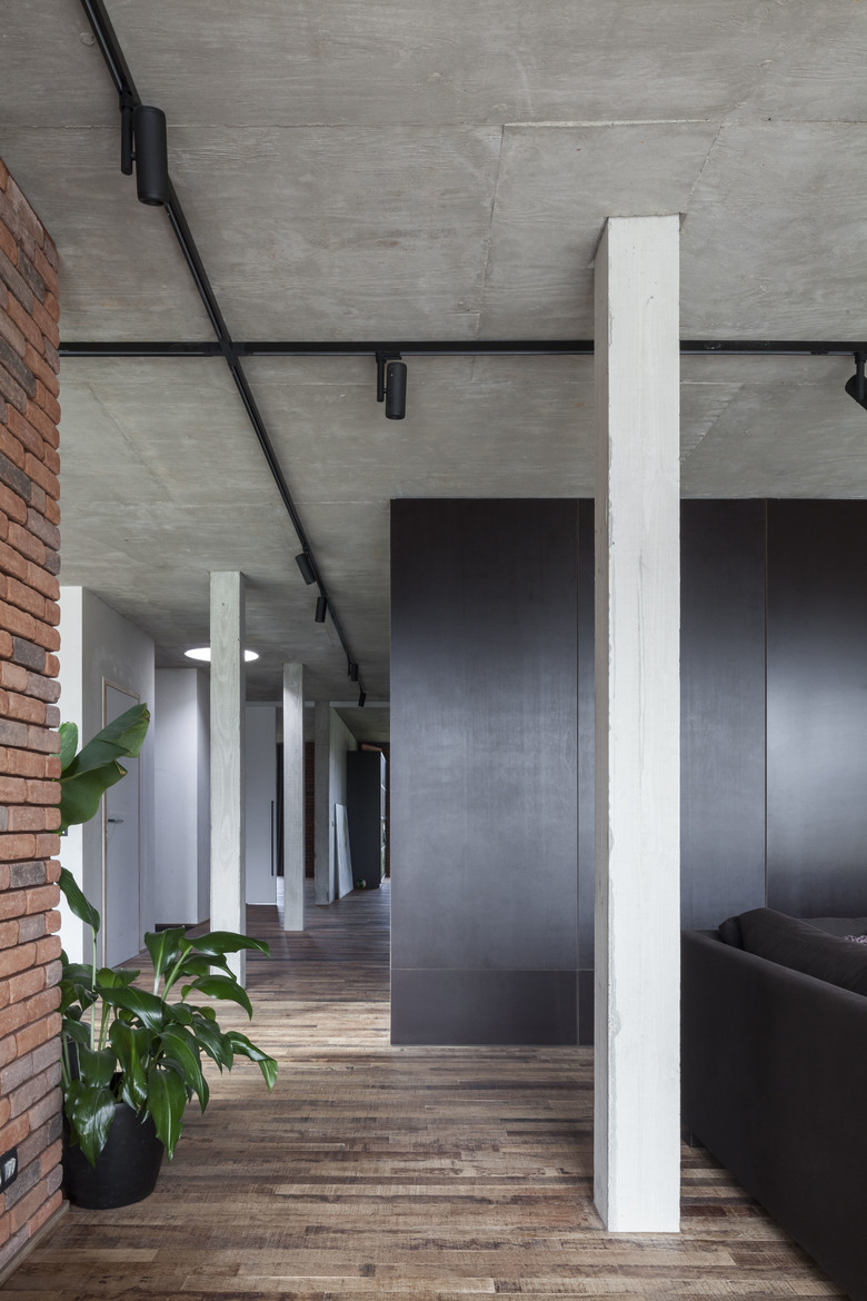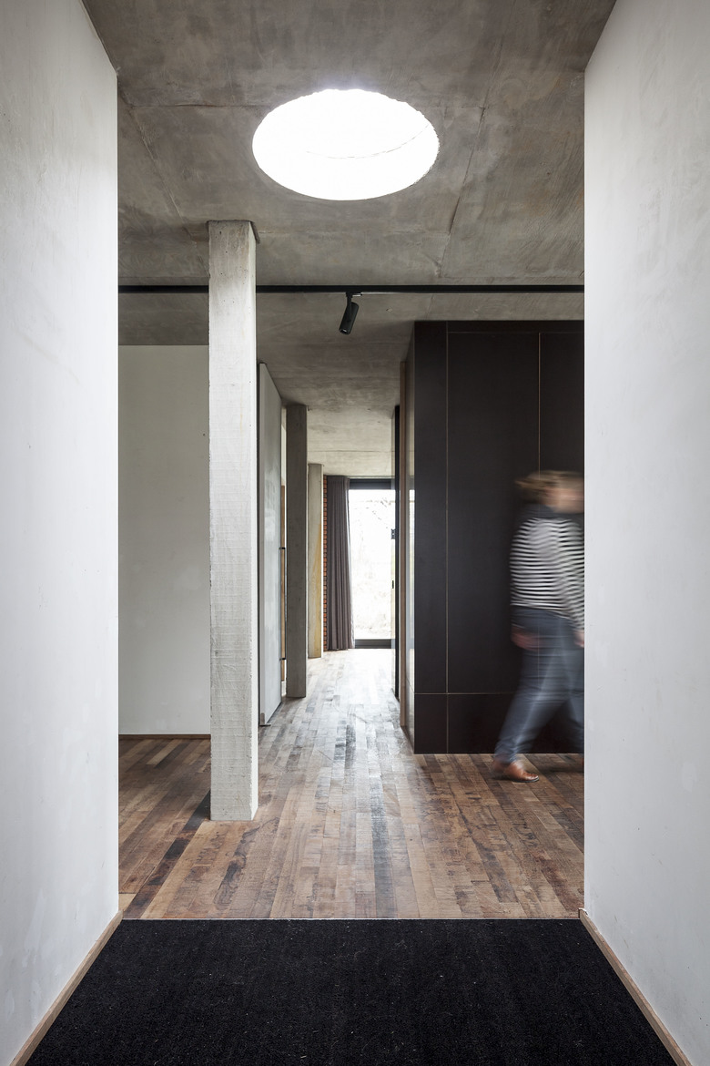Het laat toe een zeer open woning te creëren waar ruimtes in elkaar overlopen en op die manier binnenin fascinerende doorzichten ontstaan.