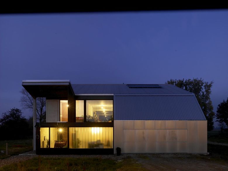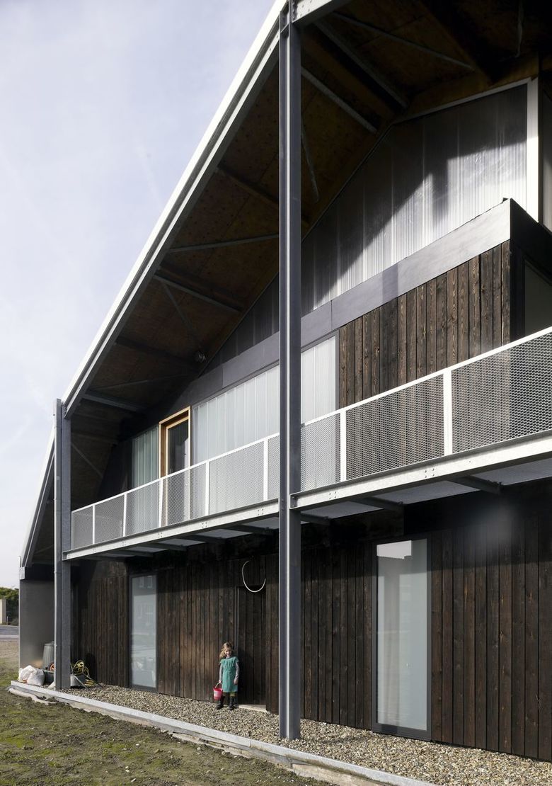 De tweede ontwerpzet introduceert de welgekende Vlaamse staltypologie: een industriële “ready-made” stalen structuur wordt in een mum van tijd opgetrokken. Onder deze herkenbare typologie stapelt de bouwheer zijn eigen woonvolumes. Dat rekt het bouwproces enigszins maar het engagement van deze zelfbouwende familie is intenser en intrigerender dan een “normaal” bouwproces.