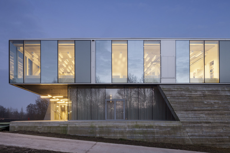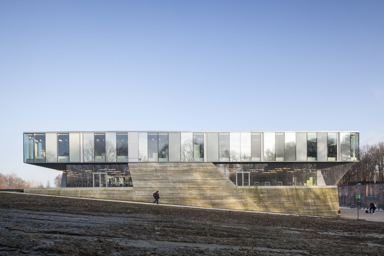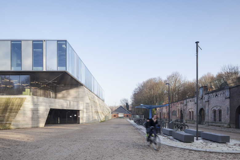 Het gebouw zet aan op het Paradeplein van het zesde Brialmontfort en schuift zich gedeeltelijk in het glacis. De gesculpteerde sokkel geeft het, naast de evidente militaire connotatie (bunker/stealth) een ruimtelijke autonomie. Het geheel wordt geïnduceerd bemost, een low-tech vorm van eco-engineering.