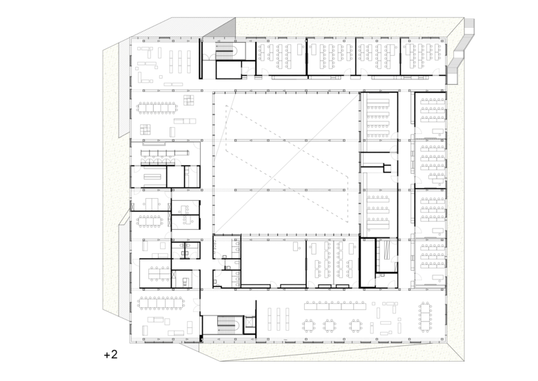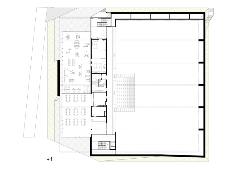 De TSS is een nauwgezette ruimtelijk vertaling van een specifiek programma van eisen. De school moet naadloos, swift en snel functioneren. De tijd van de studenten (én trainers, én docenten) is gelimiteerd, afgemeten, opgelijst in schema, complex combineerbaar. Efficiënte circulatie tussen school en training; kort, rechtlijnig, eenduidig.