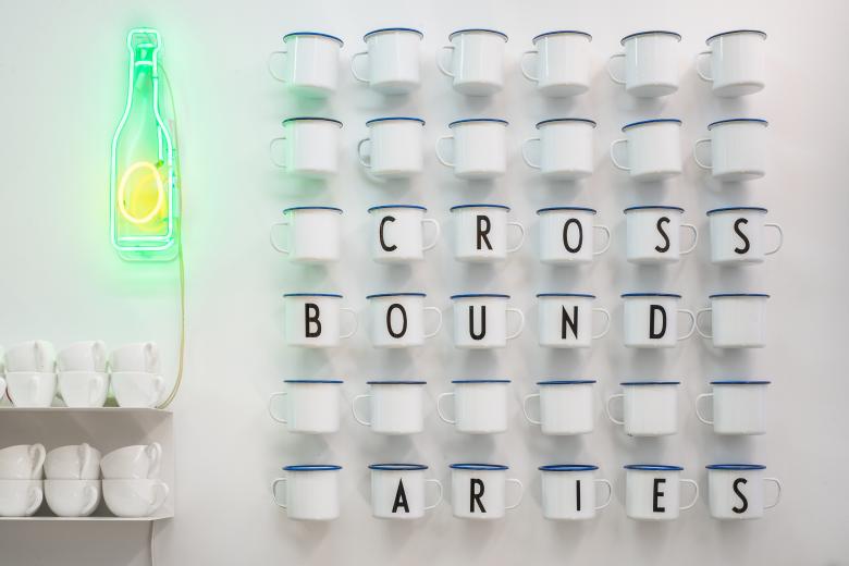 Faced with a challenge of prohibition on welding, hanging or attaching any new elements to the existing roof structure and all external walls, the design becomes very effective in satisfying Crossboundaries’ company needs while articulating the roughly 300 m2 space with very few elements, therefore committing to minimum intervention.