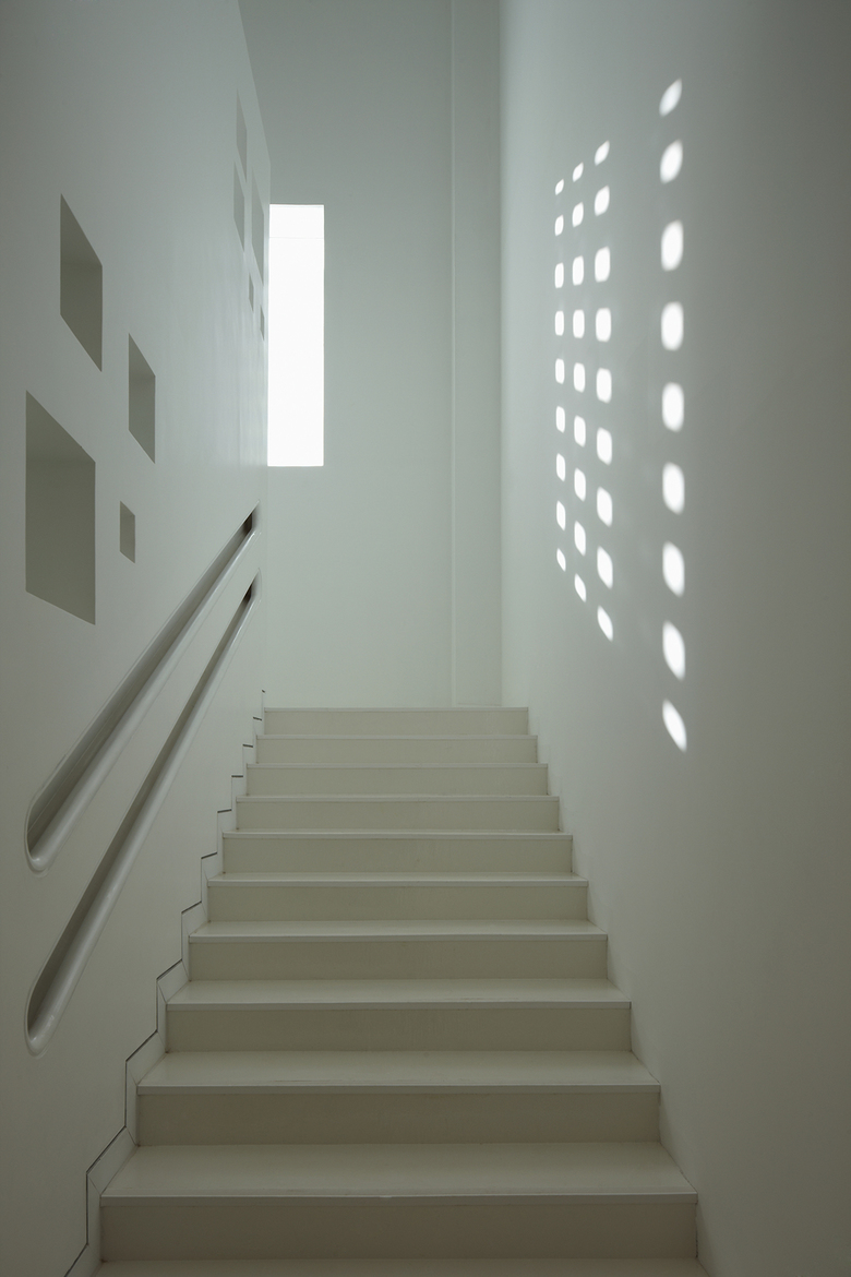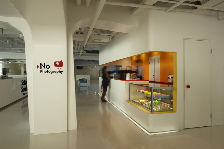 Challenged by an existing structural system, born of a different original function of the building, there was still time to adapt the upper floor plates as construction was still in progress. Shifting the levels and making cut outs to make visual connections between floors enhanced the spatial experience.