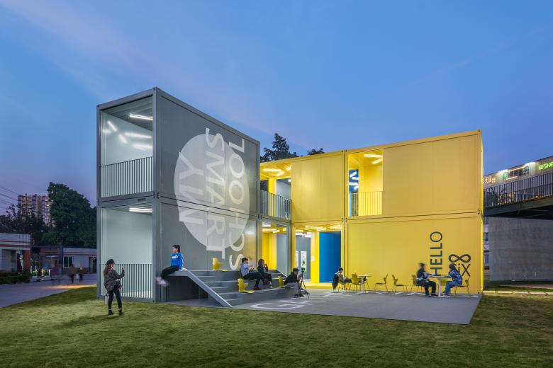 Another, seemingly opposing trend that this installation tries to tackle concerns modularization and prefabrication as a building method - a trend that has taken off in China last several years to keep up with the growing demand. Can a school be made out of modules and result in highly unique and inspiring spaces? This is the question that we grappled with in some of our recent school projects and that we aim to insist on moving forward, ensuring that the progressive teaching methods that encourage customized learning can go hand in hand with the time-saving, mass-produced modular building systems that are becoming increasingly attractive for investors.