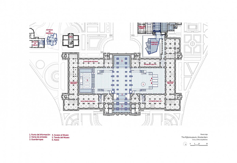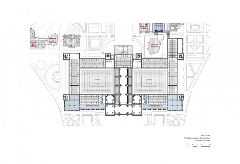 El edificio del Rijksmuseum de Ámsterdam fue proyectado a finales del XIX por el arquitecto holandés Pieter Cuypers. El programa del edificio era doble, de una parte museo nacional, de otra, puerta de entrada hacia el sur de Ámsterdam.