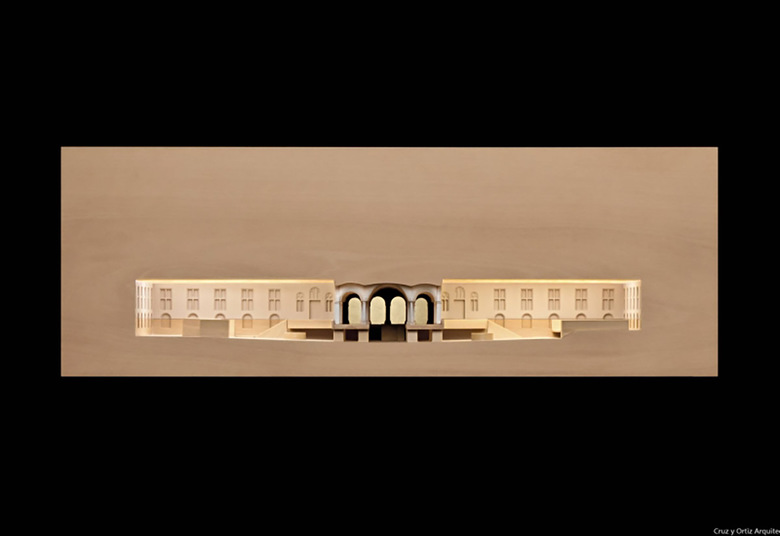 La intervención sobre el edificio consistía, por un lado, en abrir una nueva y única entrada al museo ocupando para ello la nave central del pasaje y por otro, en liberar los patios y los espacios expositivos, recuperando hasta cierto punto su estado original o al menos sus dimensiones.