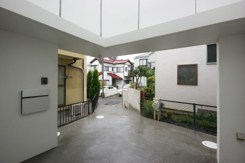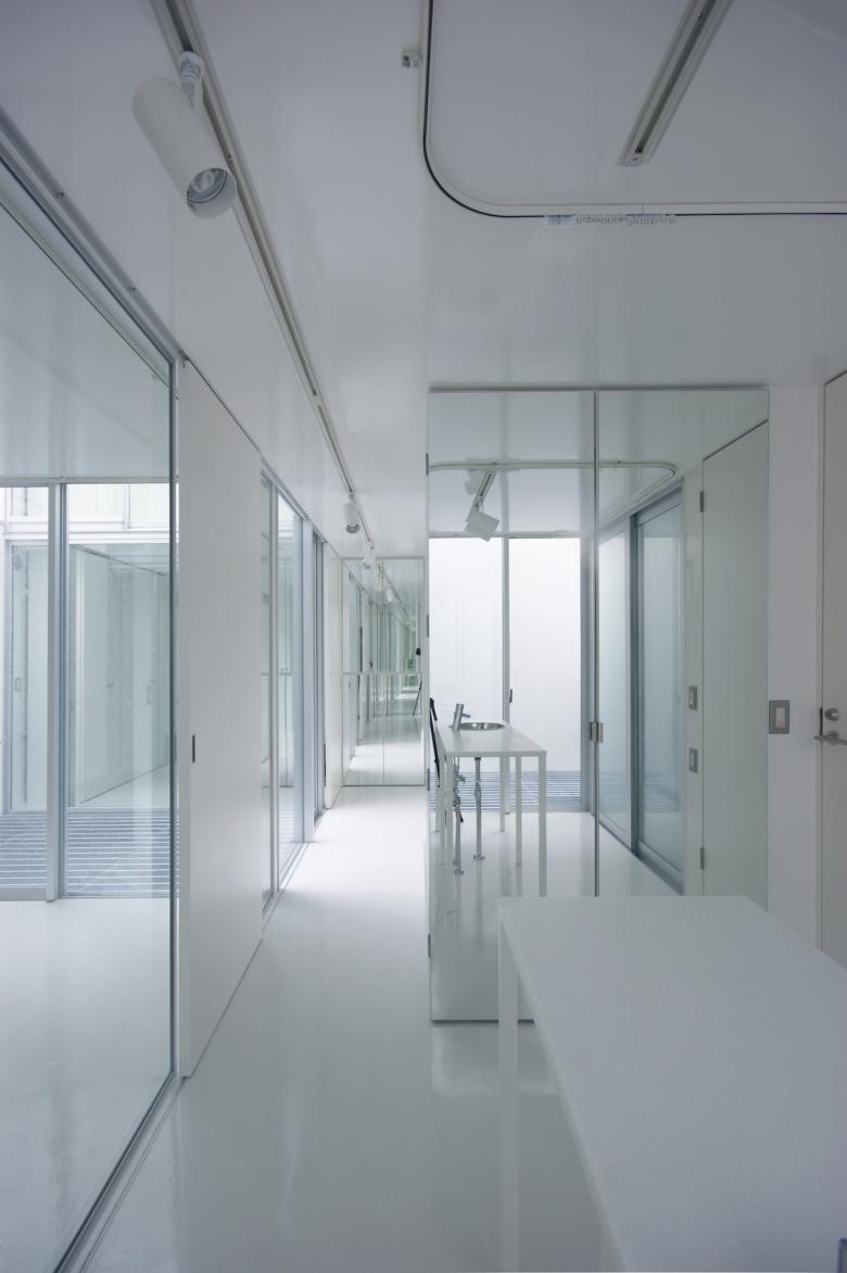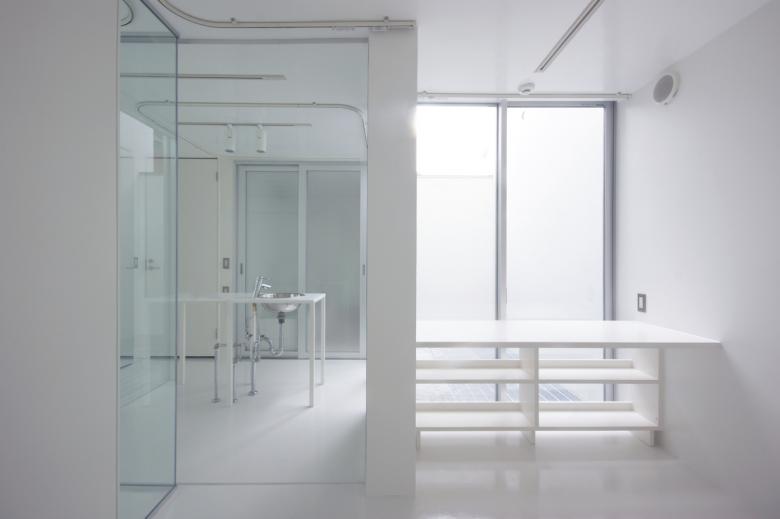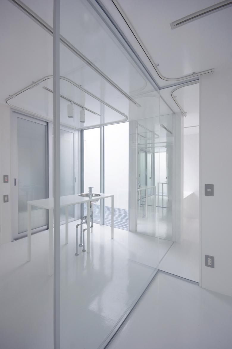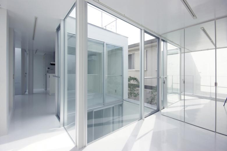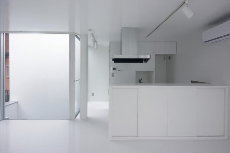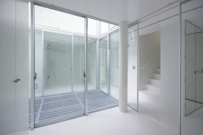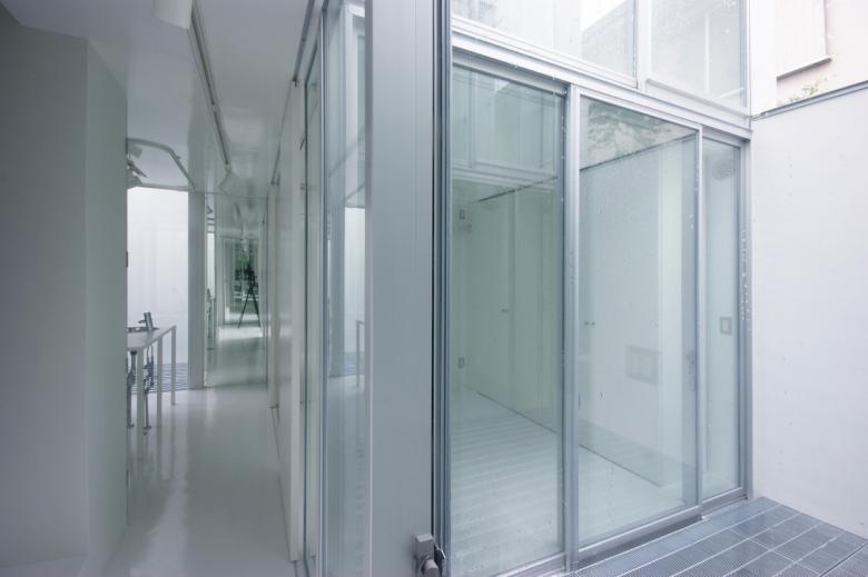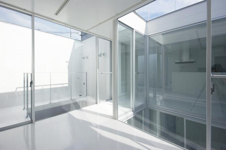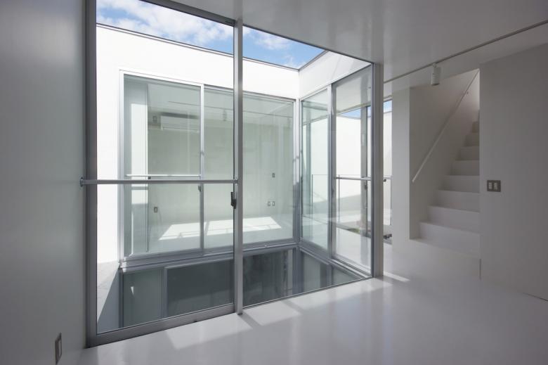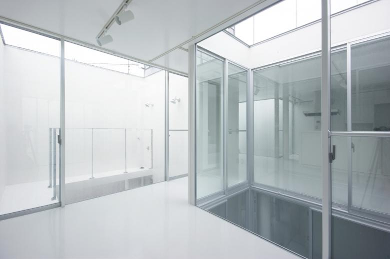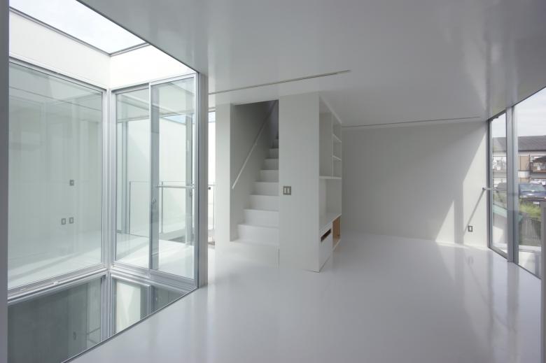 The courtyards are not room without ceiling but a room with the ceiling finished with sky. In the house of the high density area, it is rare to see the sky from the interior, while, in this house, it is possible to see the real image of sky according to the size of courtyard as well as the virtual image of sky reflected on the window glass. The sky is amplified and overlaps to the interior ceiling. The floor and the ceiling of the interior are finished with high-gloss paint that also reflects the sky and the scenery. The seeing of sky also brings the spacious sense in the space, and the space with high receptivity for the change of the season and the time appears.