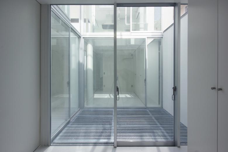 The courtyards have the size of more than 1.6 meters in the short side and more than 2.6 meters in the long side, and those are longer than the usual distance from the windows to the outside wall of the neighboring house in the high density area. Therefore, in this house, even the ground floor gets five times or more necessary windows size for the daylight that is provided by regulation. Unlike the house with windows on the outside wall, the windows in this house are always open and the light and the wind can be taken at maximum without consideration to the privacy since the glance from the neighboring house is considerably shut out.