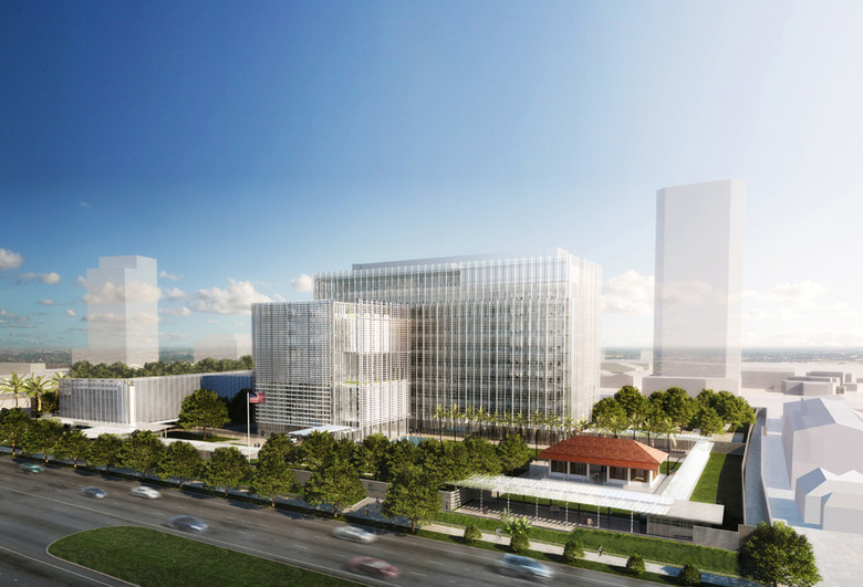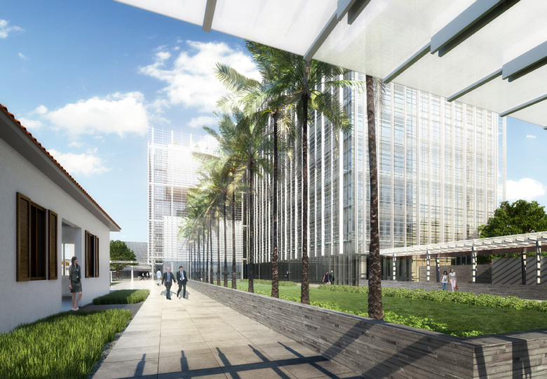 The United States government is planning to build a new Embassy on the site of its existing diplomatic compound in central Jakarta. The new Chancery will replace a complex of low-rise buildings which have become inadequate as the needs of the mission have grown. The new compound will allow the Embassy to consolidate US agencies on a single site in secure and modern facilities. In addition to a new ten story Chancery, the redeveloped compound will include a four story parking structure for 405 vehicles, a two story annex for facility maintenance support, a utility building, a US Marine Guard residence attached to the Chancery, an historic building reconstruction and three entry screening pavilions. Landscape integration, water mitigation, energy consumption, and solar heat gain have been addressed in the design to meet the US Department of State goal for this project of a LEED rating as established by the US Green Building Council.