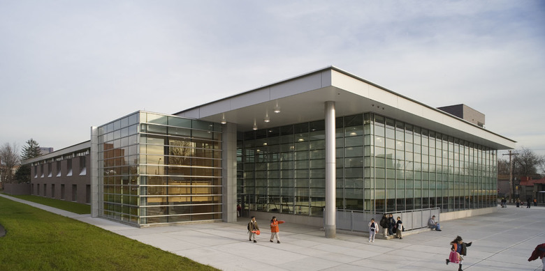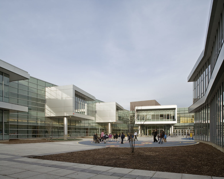 The John C. Daniels School provides Pre-K through 8th grade students with a new school building in an area of New Haven that has a diverse mix of institutional, commercial and residential use. A key goal in the design of the school was to provide a secure yet child-friendly environment for the students in the midst of its urban setting. Designed for 650 students, the building rises two stories and includes classrooms, a library, a full size gymnasium, as well as specialty art and science facilities. A large cafeteria / choral space includes a moveable wall, providing the ability to create two separate rooms when needed. This flexible space is available for use by the surrounding community for large gatherings and functions.