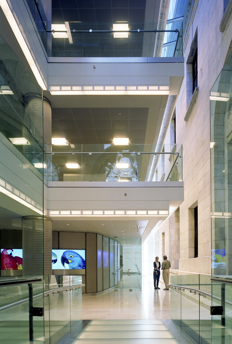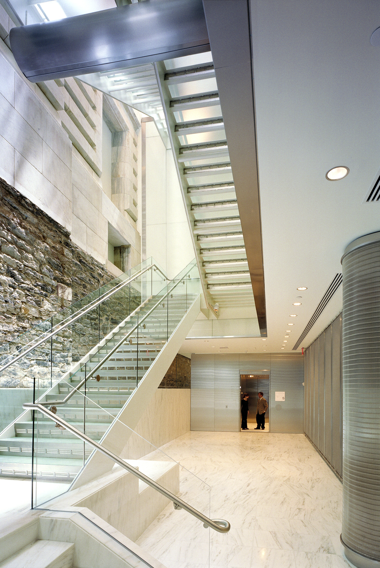 South Court, a six-story infill structure in the open south courtyard of the Center for the Humanities Building, is the first permanent addition to the historic New York Public Library in 89 years. In an area that once served as an entrance for horse carriages, South Court accommodates the Library’s growing public education program as well as administrative and staff support space. The new building houses an electronic teaching center, an orientation theater, an auditorium, administrative offices, and a staff lounge located on the glass-walled top floor.