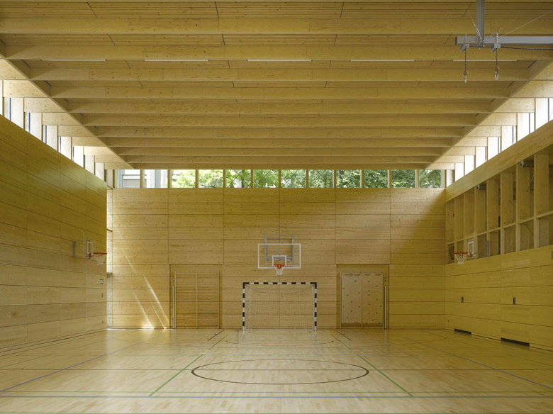 Sporthalle im Baukastensystem, in Passivhausbauweise