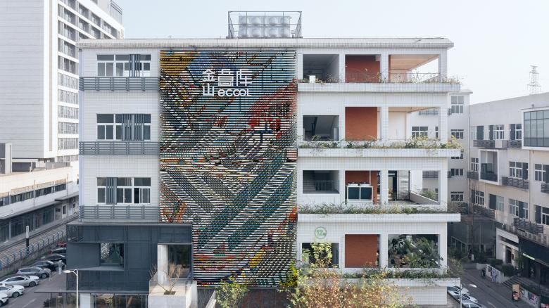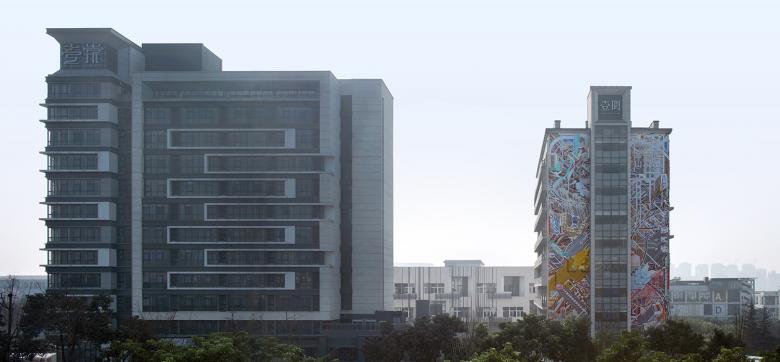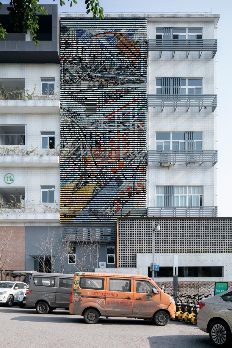 With the unique urban landscape of Chongqing as the theme, DAS created a large mural Chongqing Jungle for ECOOL Creative Park. The city of Chongqing is filled with vernacular spectacles. The mural is a portrait for the city with many local landmarks. A combination of axonometric projection and one-point perspective is adopted in the drawing. Each detail is depicted by axonometric projection, which provides flexible viewpoints and maintains the space continuity. For the overall composition, the upper half is drawn from a low angle while the bottom half from a high one. The projection is made from the edge of the drawing to the center, creating a hidden focal point in the center of the drawing.