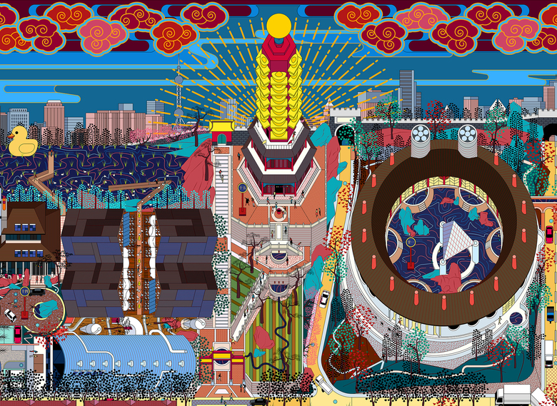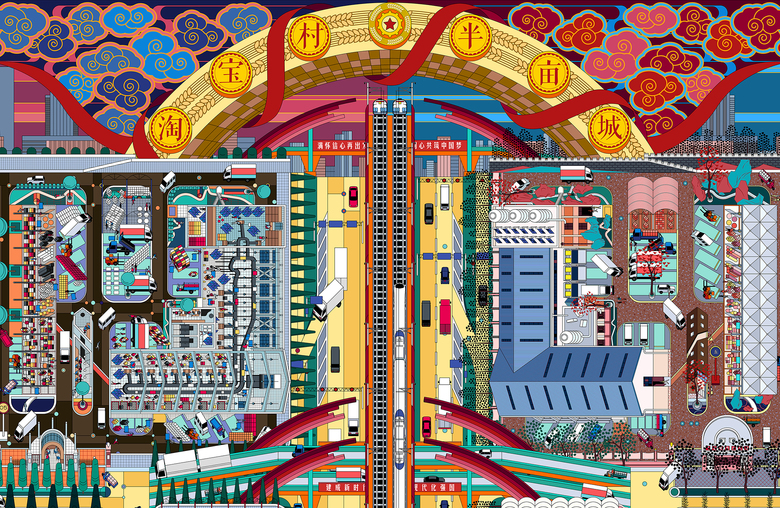 Taobao Village · Smallacre City is a large panorama created by Drawing Architecture Studio (DAS) for the exhibition of Building A Future Countryside at the Chinese Pavilion of the 16th Venice Architecture Biennale. Inspired by Broadacre City proposed by Frank Lloyd Wright in the 1930s, DAS projects the realistic scenarios of Taobao Village in China onto the utopian plan of Broadacre City, combines the status quo of the very Chinese countryside and classic American avant-garde architectural design, and mixes the underlying folk wisdom with the top elite thinking. To DAS, Taobao Village is not only an irony and criticism to the impracticability of Broadacre City, but also an ultimate realization of the core concept of Wright’s utopia.
